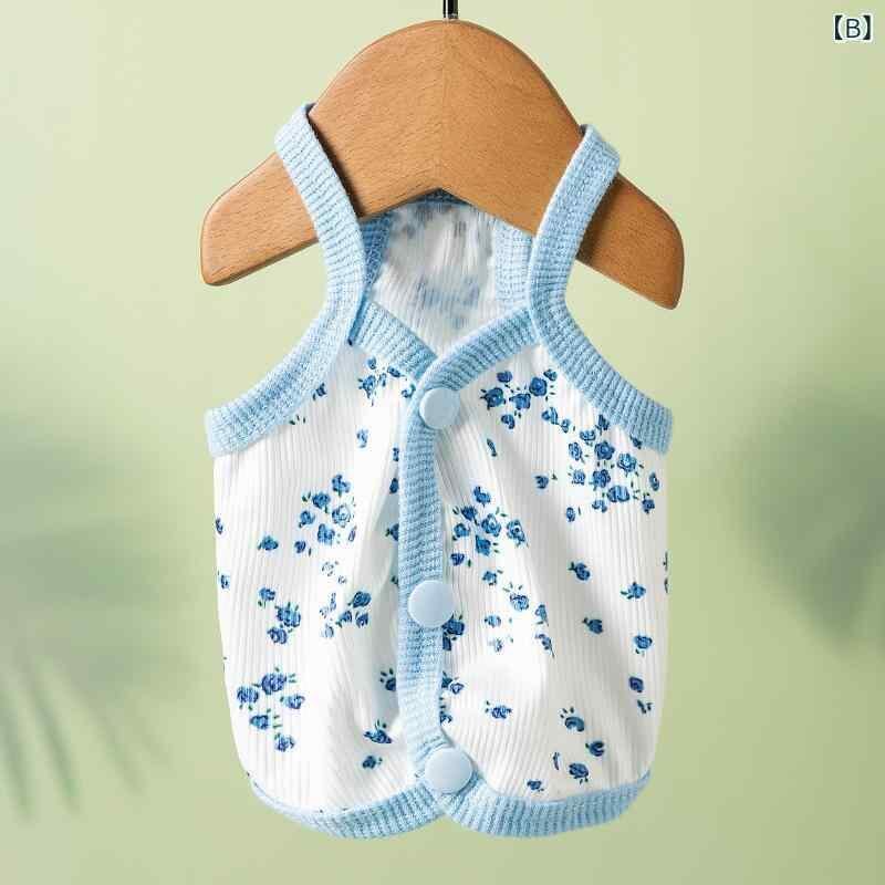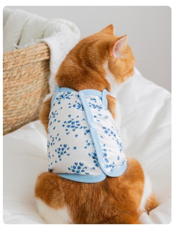 犬服 猫服 小型犬 中型犬 子犬用 かわいい おしゃれ ドッグウェア キャットウェア 薄手 通気性 涼しい 綿 コットン キャミソール ノースリーブ 小花柄 グリーン系 ブルー系 カジュアル お散歩 お出かけ 普段使い