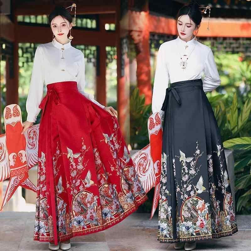 ドレス レディース 新中式 高級感 馬面スカート チャイナドレス セットアップ 花嫁 婚約 結婚式 披露宴 敬酒服 ポリエステル レッド ブラック 春