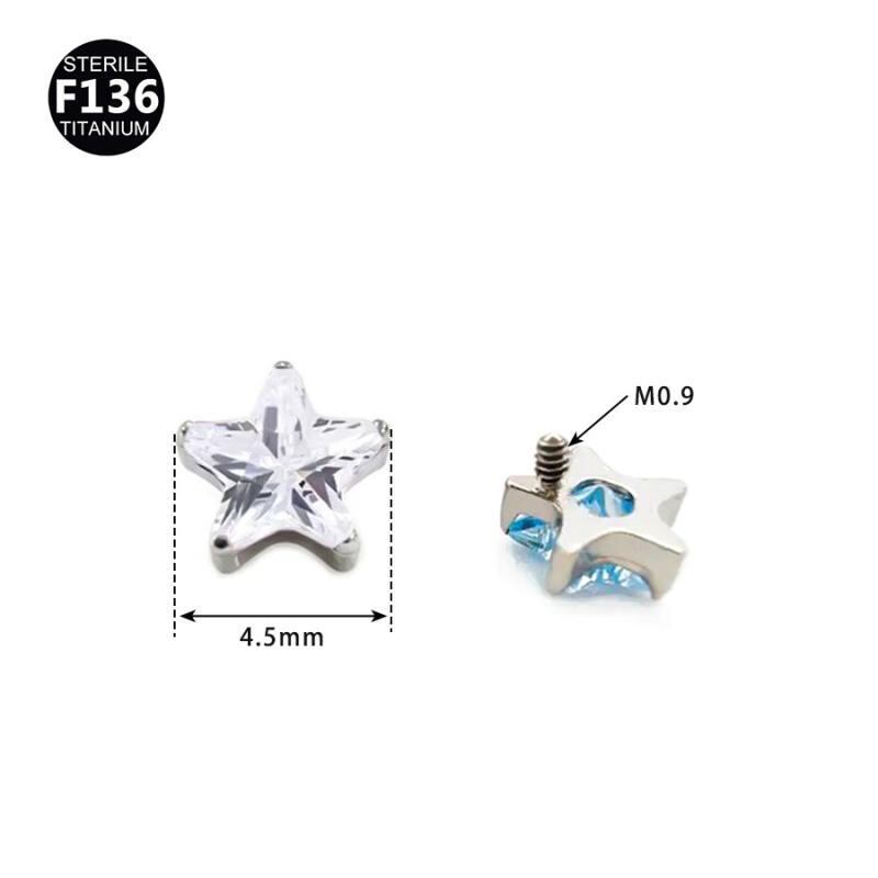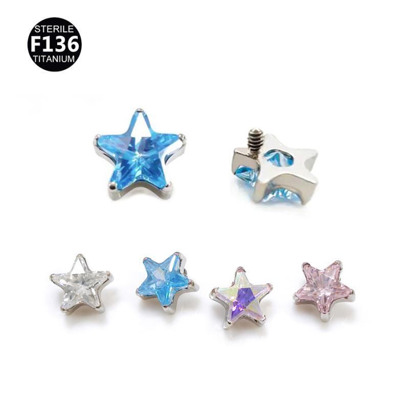 ボディピアス 男女兼用 F136チタン合金製 かわいい 五芒星 スター ジルコン リップピアス 軟骨ピアス ヘリックスピアス 耳たぶピアス 低アレルギー 軽量