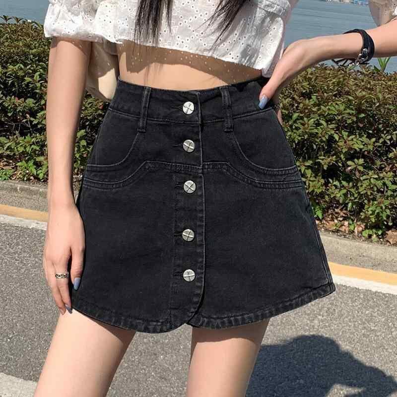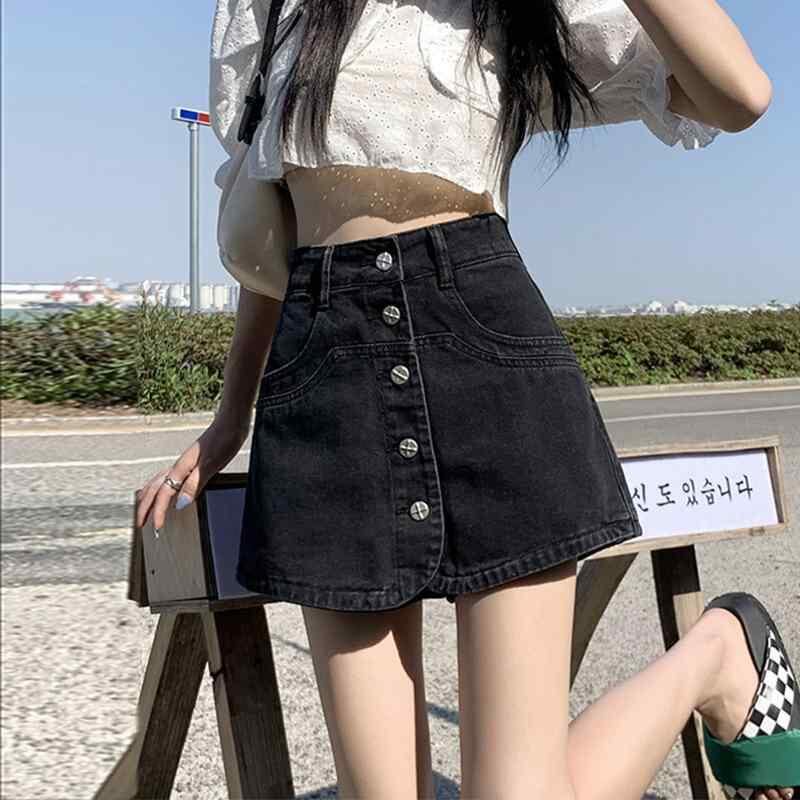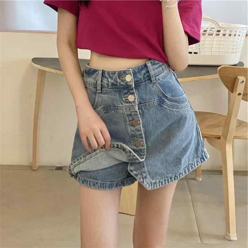 デニム キュロットスカート レディース 大きいサイズ プラスサイズ ハイウエスト ボタンデザイン Aライン ミニ ゆったり 体型カバー 着痩せ 綿 コットン 夏 カジュアル 通勤 都会的 普段使い