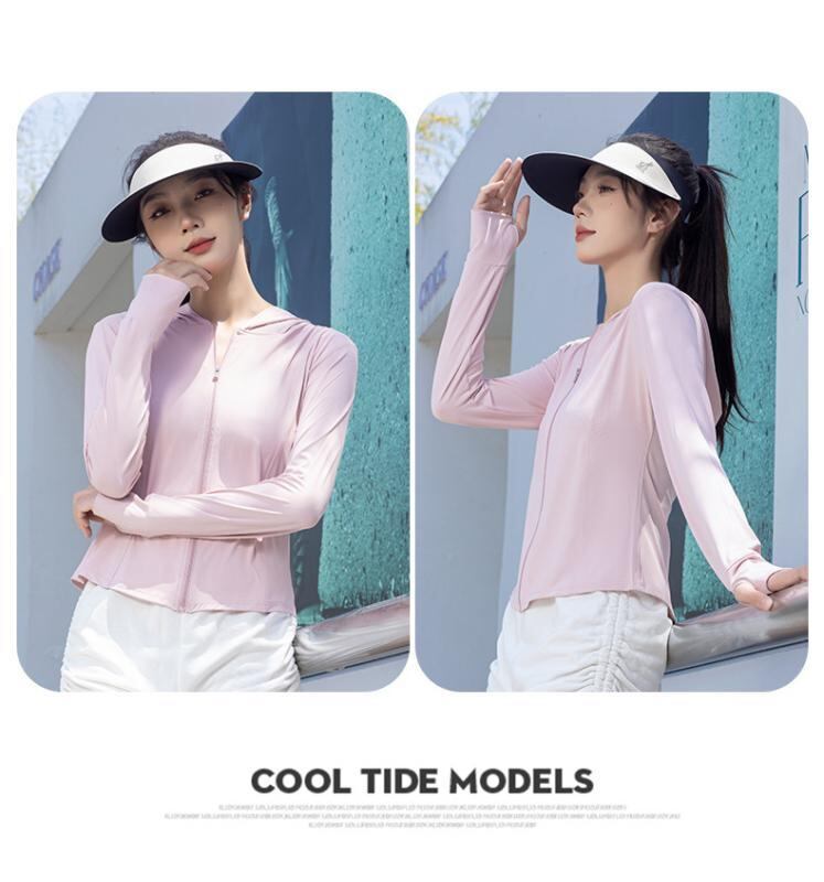 UVカットパーカー レディース 夏用 接触冷感 薄手 軽量 ポリエステル素材 ヨガ フィットネス スポーツ アウトドア 紫外線対策 UPF50+ フード付き スリムフィット 通気性 吸汗速乾 アウター