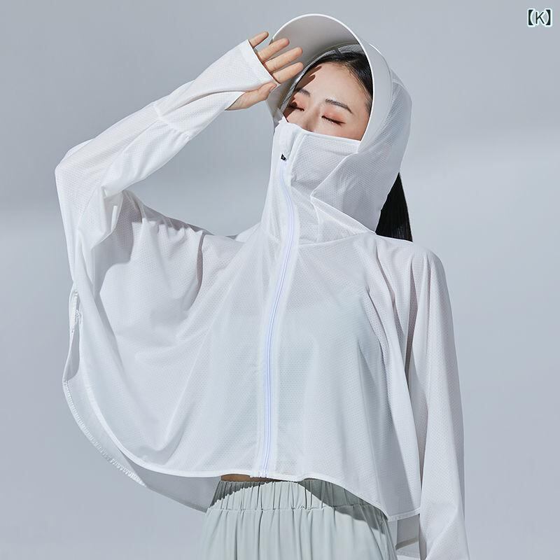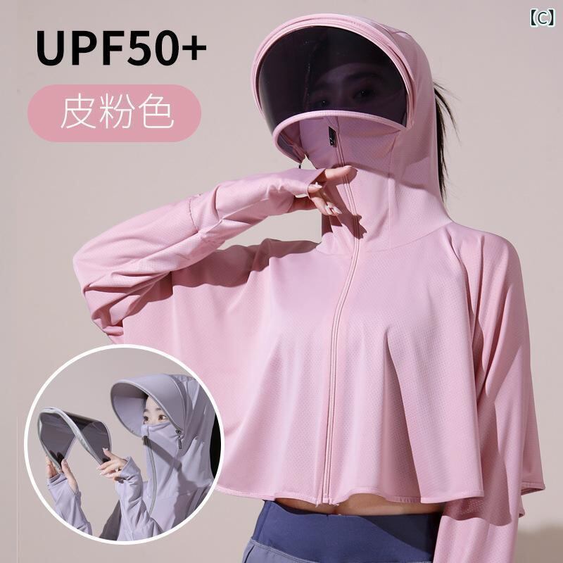 UVカットパーカー レディース フェイスカバー 紫外線対策 接触冷感 通気性 超薄手 ショート丈 ドルマン袖 ジップアップ ポリエステル スパンデックス 夏用 通勤スタイル カーディガン