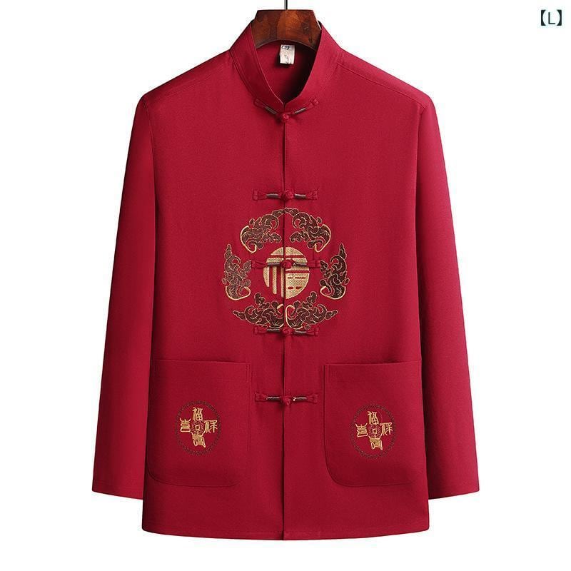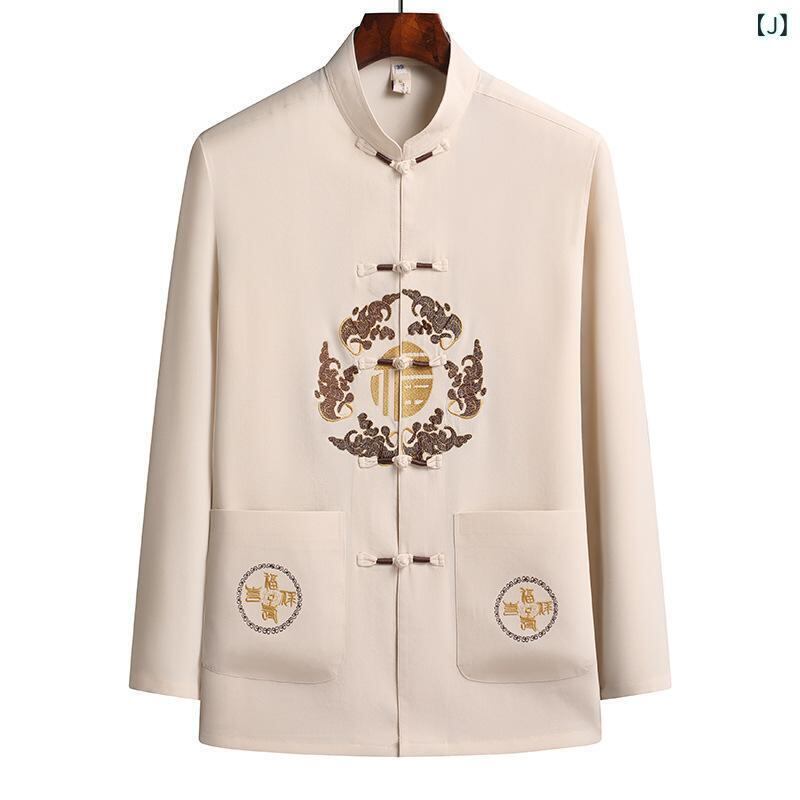 唐装 メンズ 男性用 シニア向け 高齢者 チャイナ服 長袖 立ち襟 マンダリンカラー 中華風 中国風 レトロ クラシック カジュアル 普段使い 夏物 春物 ポリエステル 化学繊維混紡 グレー ネイビー ワインレッド ベージュ グリーン