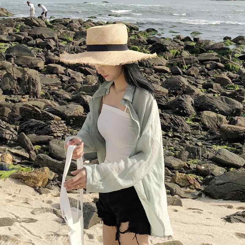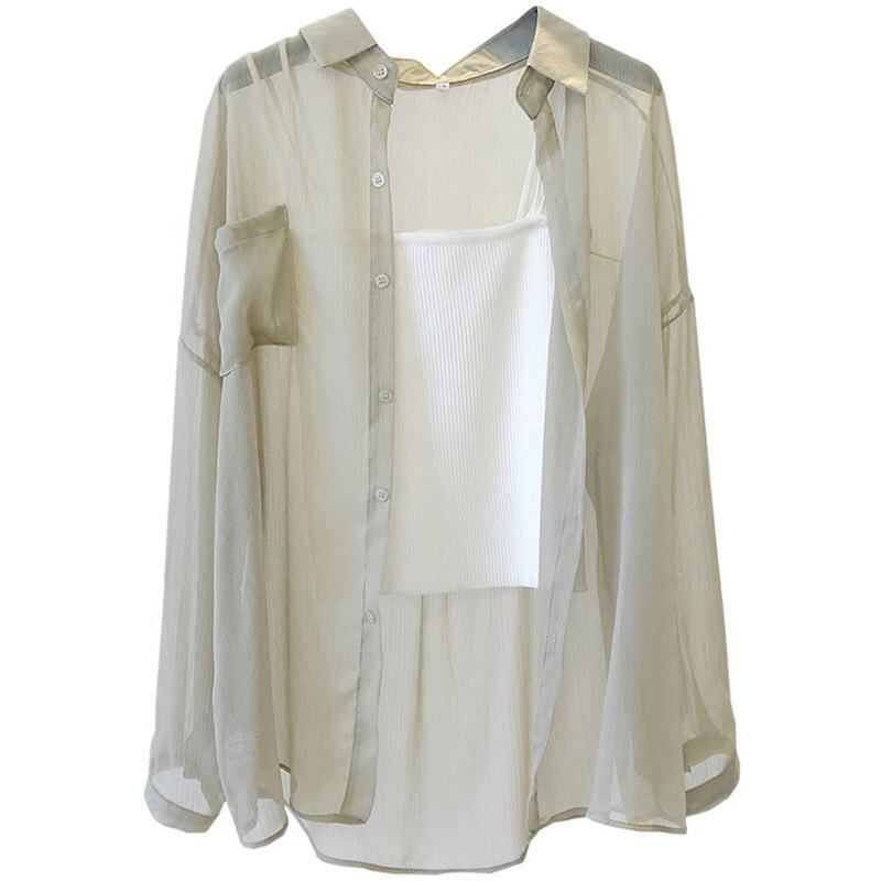 シャツ レディース 薄手 UVカット 接触冷感 ゆったり ルーズフィット 体型カバー カジュアル リゾート ビーチ 海辺 羽織り ブラウス ポロ襟 ロングスリーブ ストレートシルエット ホワイト ピンク グリーン