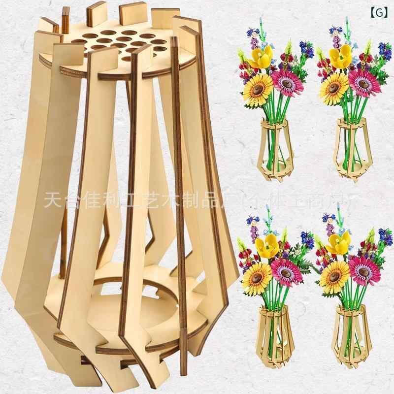 花瓶 木製 パズル フラワーベース 組み立て式 ジグソーパズル 柵型デザイン DIY インテリア飾り 天然木 ポプラ材 ナチュラルウッド リビング 玄関