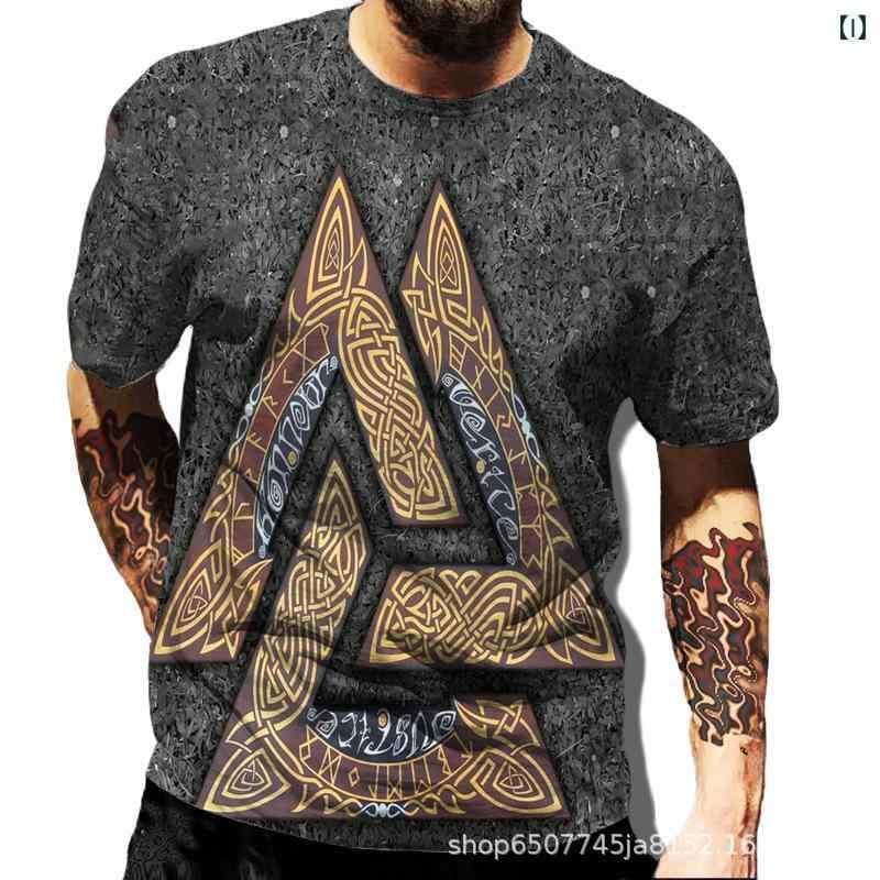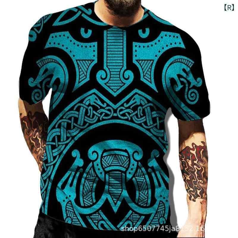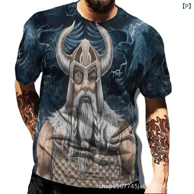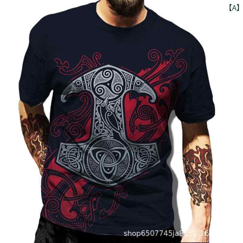Tシャツ メンズ バイキング トーテム柄 3Dプリント グラフィック カジュアル 半袖 ポリエステル 通気性 速乾 ゆったり ルーズフィット クルーネック
