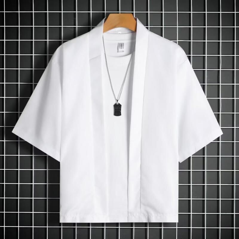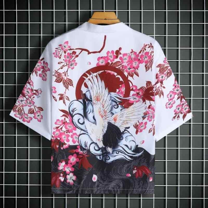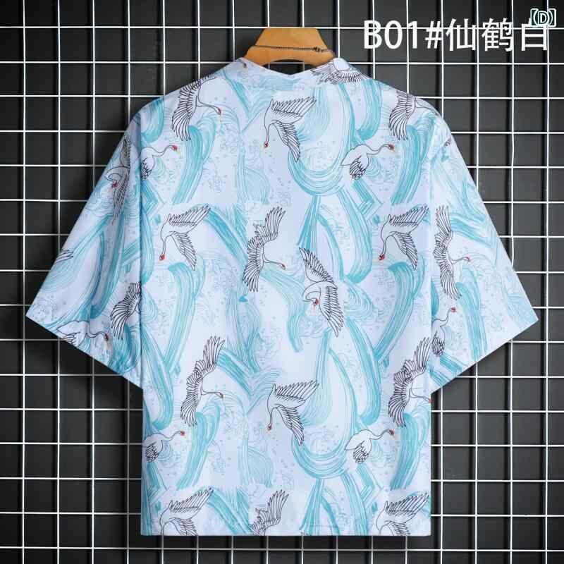 羽織 ユニセックス 民族風 エスニック レトロ ヴィンテージ 浮世絵柄 和柄 総柄プリント 七分袖 3/4スリーブ ゆったり ルーズフィット ビッグシルエット ドロップショルダー カジュアル 普段使い 日常着 ポリエステル混紡 軽量 通気性