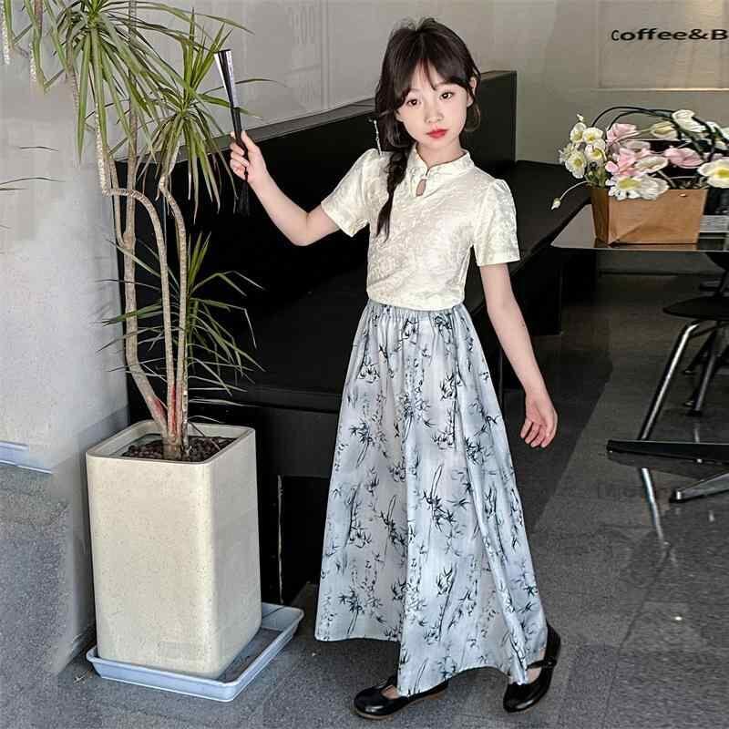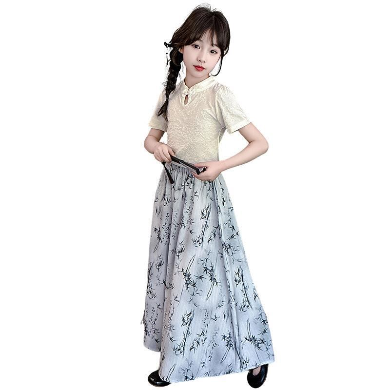 パンツセットアップ キッズ 女の子 中国風 チャイナボタン 半袖トップス ワイドパンツ 2点セット 夏 薄手 シフォン コットン 柔らかい かわいい 普段使い