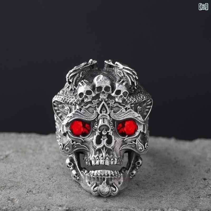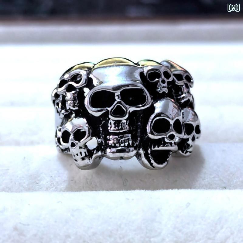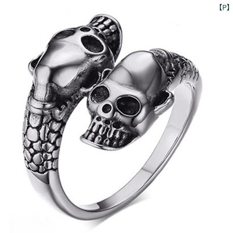 指輪 リング メンズ 男女兼用 スカル ドクロ レトロ ヴィンテージ アンティーク 大胆 迫力 個性的 トレンド ファッション 合金製 オープンリング サイズ調整可能