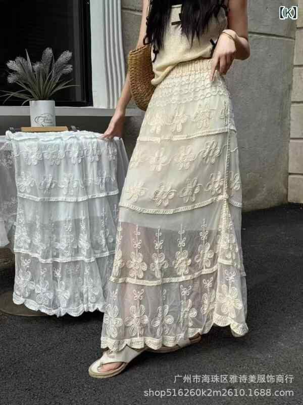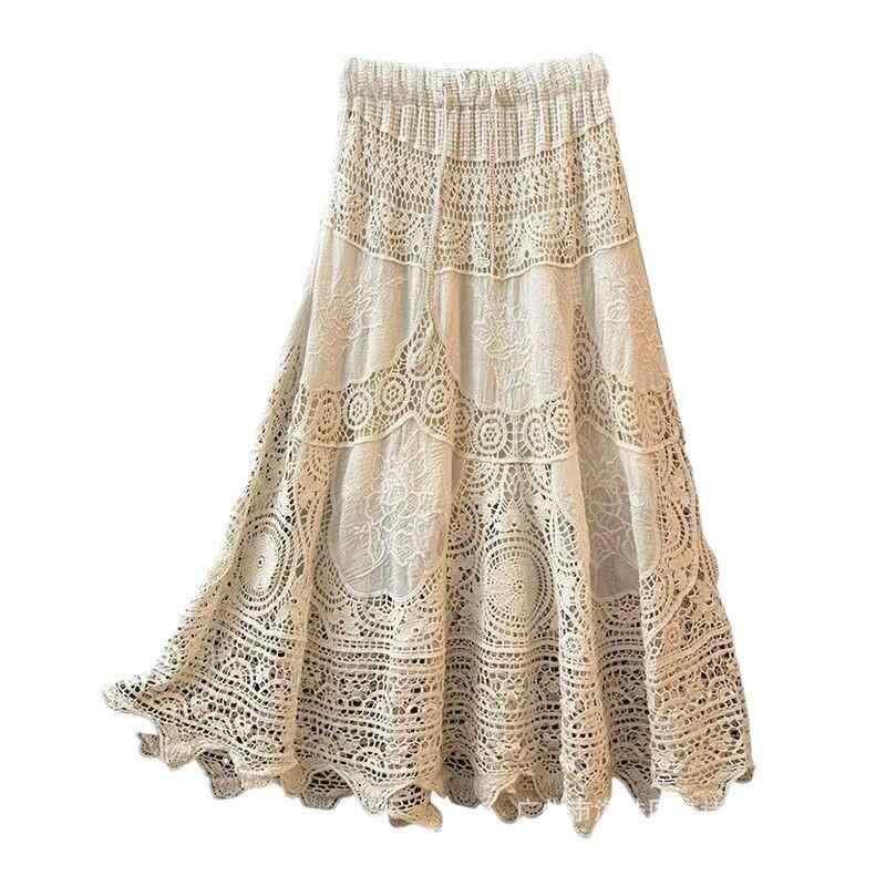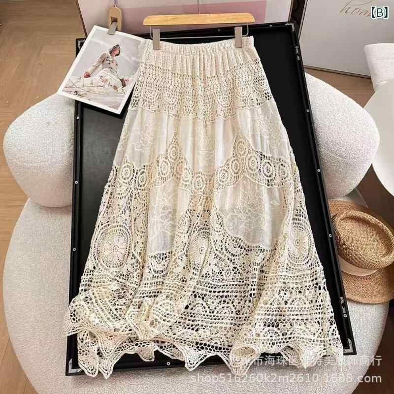 スカート レディース フレンチ ロマンティック 高級感 スタイルアップ 着痩せ コットン Aライン ミモレ丈 クロシェ編み 微ストレッチ シンプル カジュアル 着回し 個性的デザイン