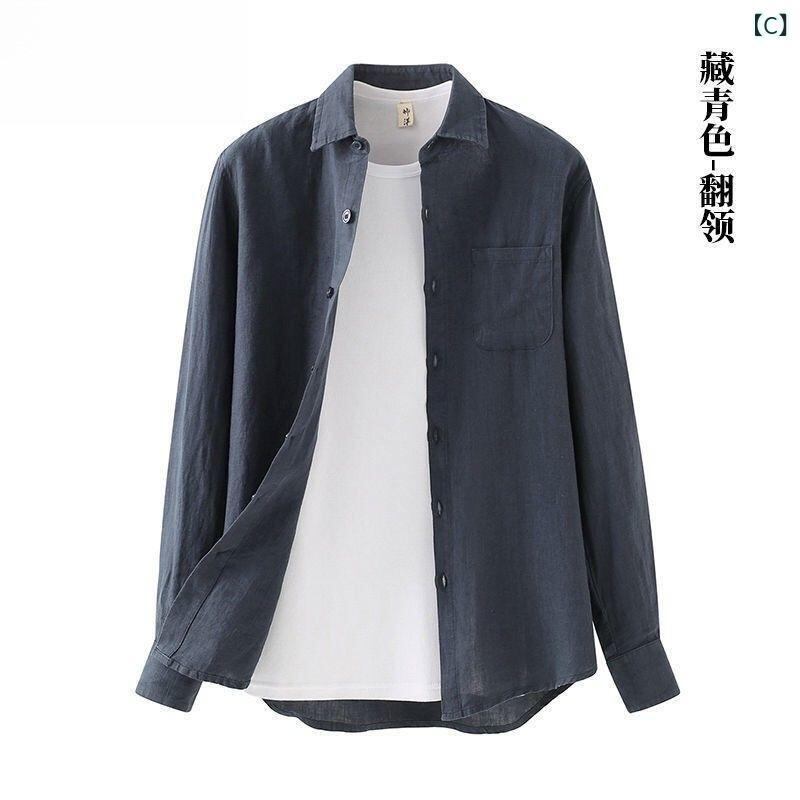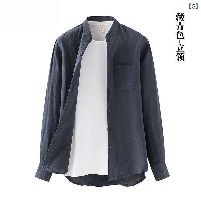 シャツ メンズ 麻素材 長袖 春秋 ゆったり ルーズフィット オーバーサイズ 中国風 開襟シャツ 大きいサイズ カジュアル ファッション トップス 通気性 吸湿速乾 快適