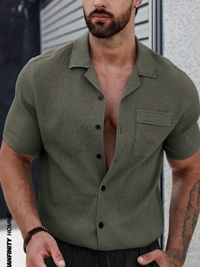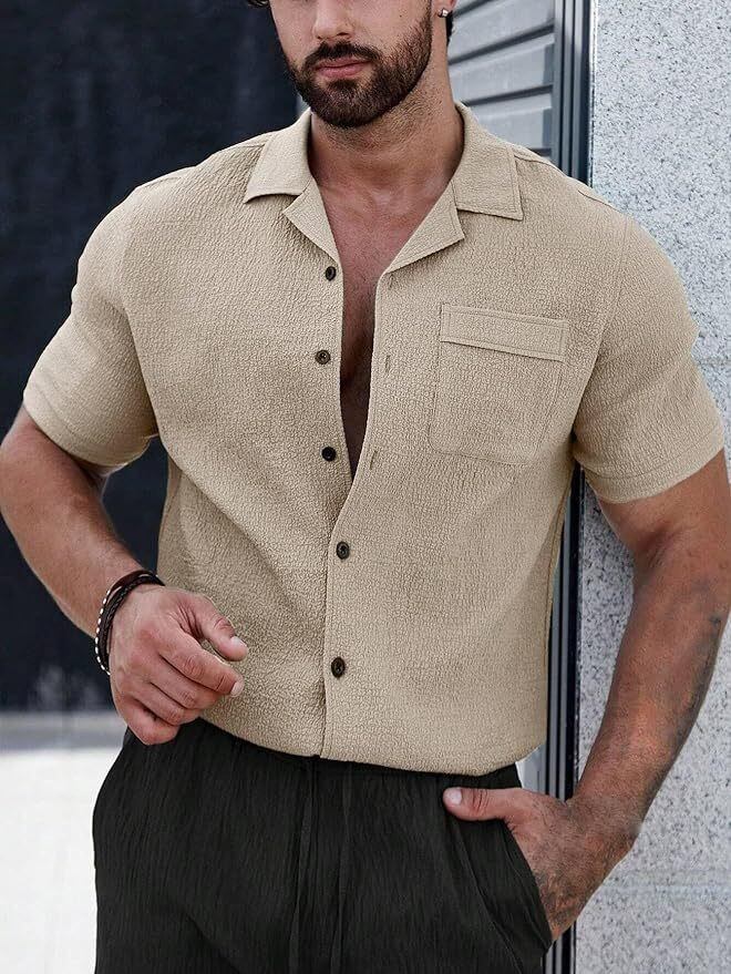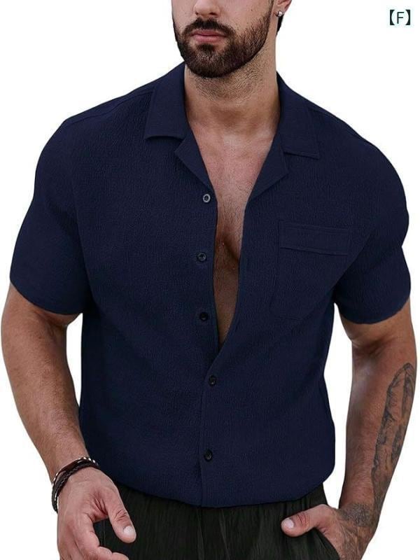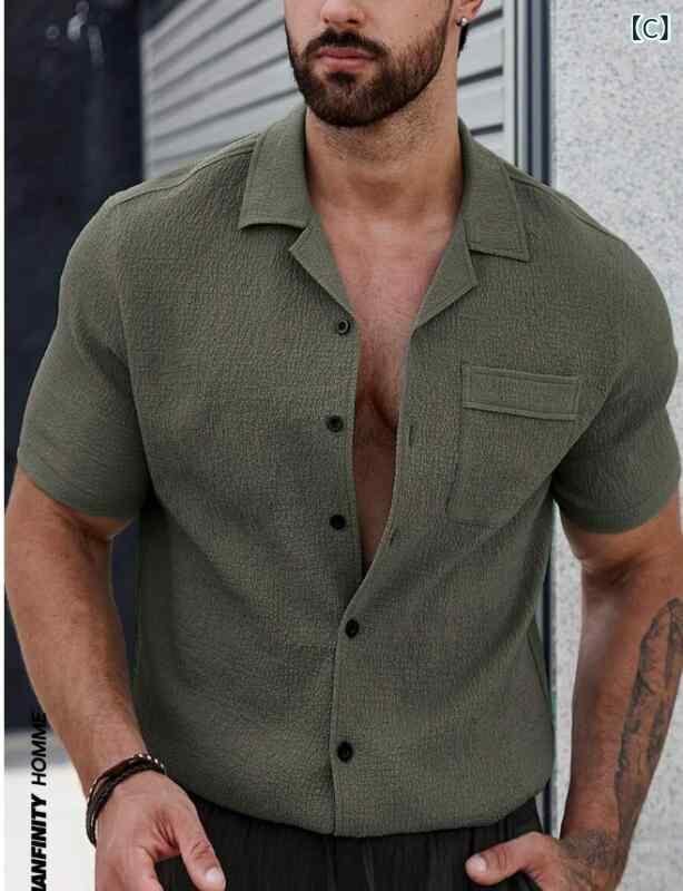 シャツ メンズ 男性用 半袖 無地 ゆったり ルーズフィット 麻 リネン 開襟 オープンカラー 大きいサイズ ビッグサイズ ウォッシャブル ボタン付き ポケット オールシーズン アイロン不要 ビーチ リゾート カジュアル
