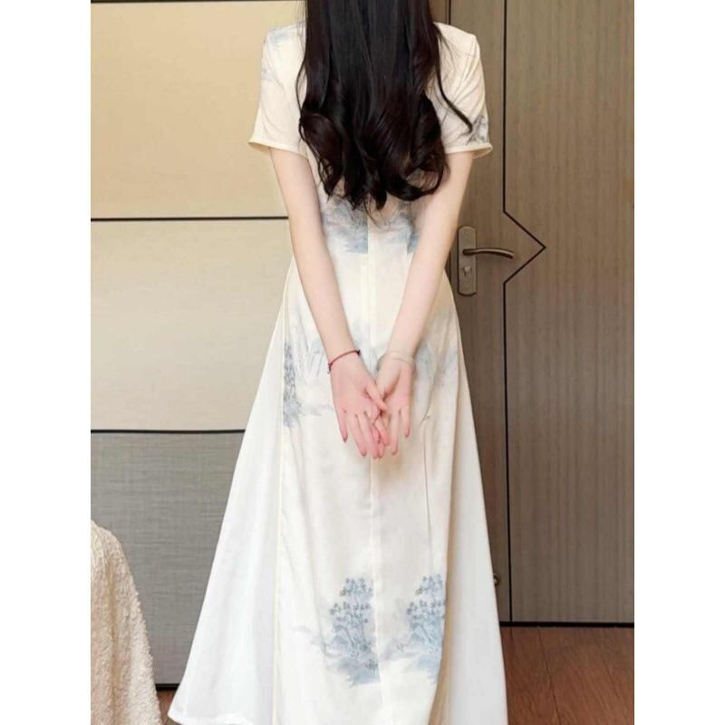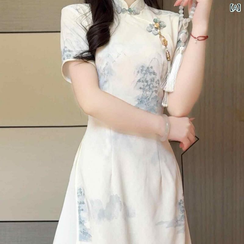 チャイナドレス レディース 改良型 オフホワイト ロング丈 ホルターネック フリル袖 ポリエステル製 エレガント 上品 シティユース オフィススタイル お呼ばれ フォーマル