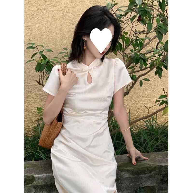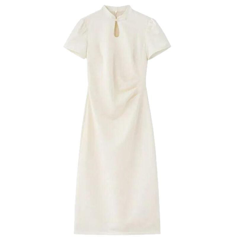 ワンピース レディース モダンチャイニーズ 中華風 改良 チャイナドレス 半袖 ミディ丈 スタンドカラー ハイウエスト エレガント 上品 ポリエステル プリント柄 夏