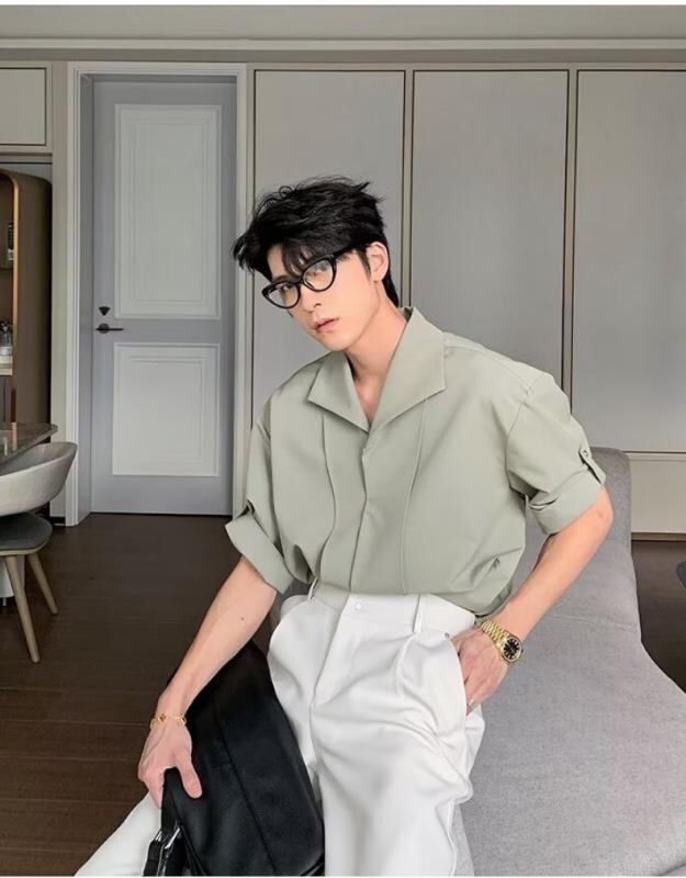 シャツ メンズ トップス 接触冷感 半袖 夏用 ポリエステル 通気性 ウォッシャブル ゆったり オーバーサイズ リラックスフィット 大人カジュアル トレンド 高級感 デザイン性 開襟 通勤 ブラック ホワイト グリーン