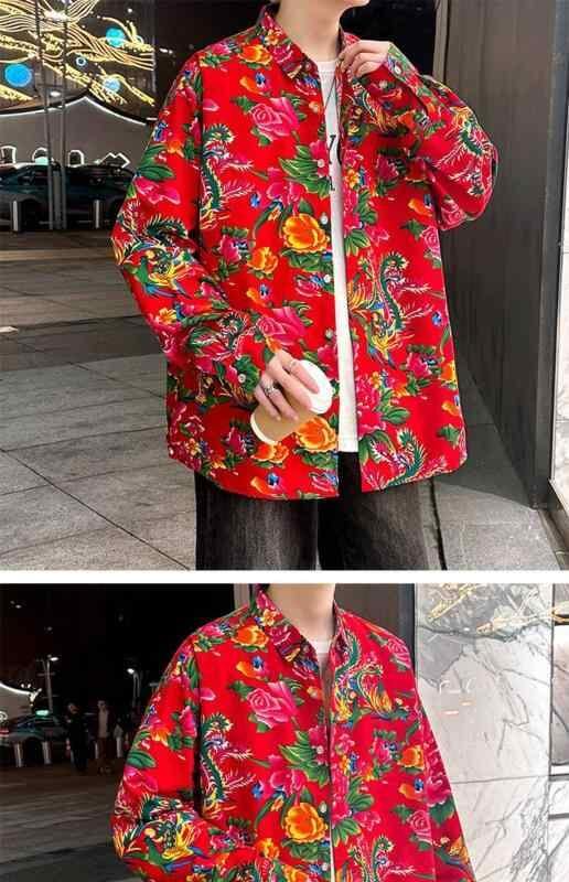 ・カテゴリ: シャツ・スタイル: 港風スタイル・主な素材: ポリエステル混紡 (ポリエステル81~90%)・機能: 洗濯機洗い可、ノーアイロン・デザイン: 開襟シャツ・フィット: ゆったり・ネックライン: オープンカラー・袖丈: 長袖・柄: 小花柄・用途: 普段使い・適応シーズン: 春秋・対象年齢: 成人・性別: メンズ・カラー展開: レッド、ブラック、グリーン・サイズ展開: M、L、XL、XXL、3XL