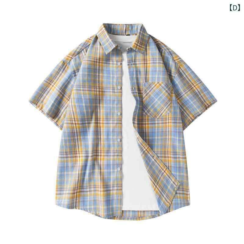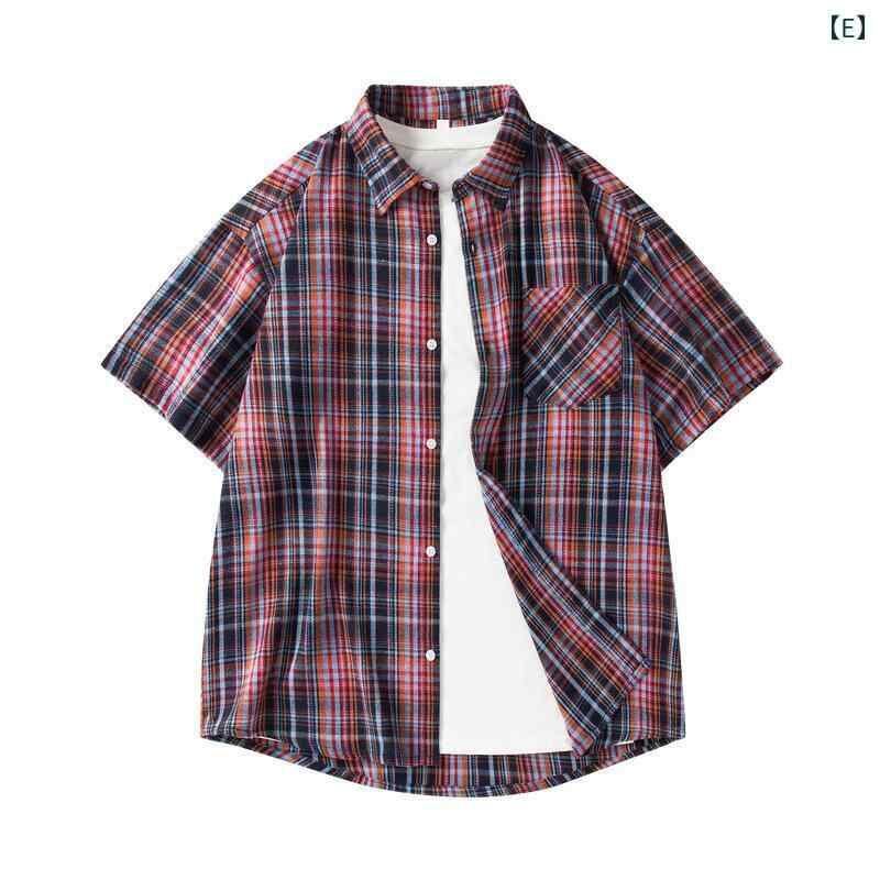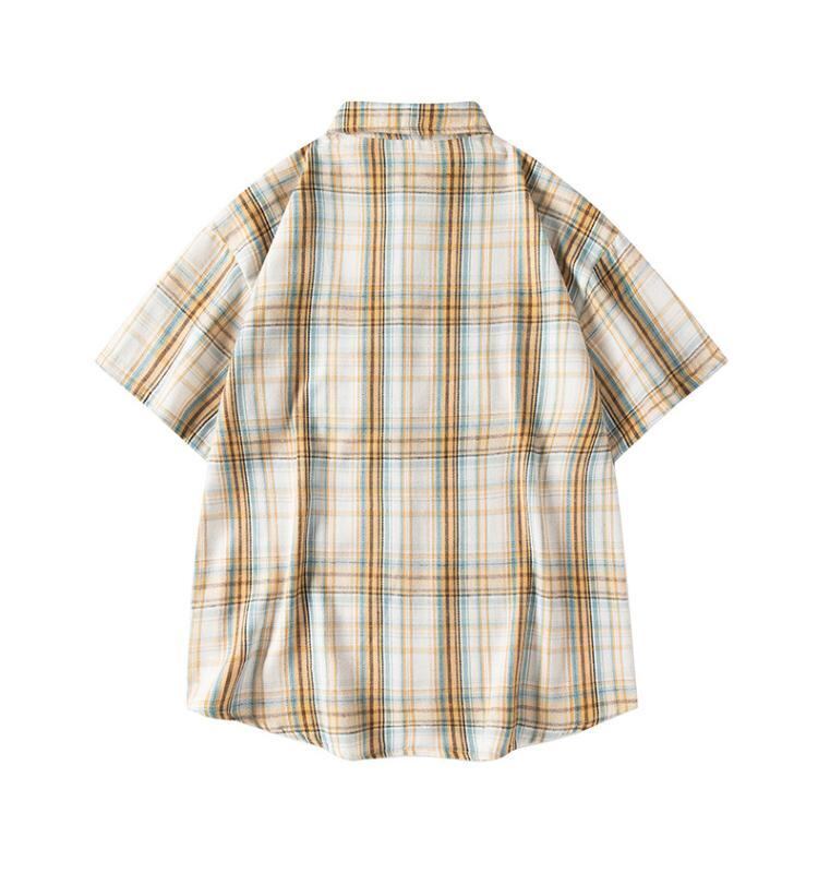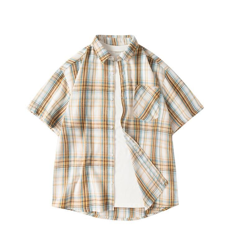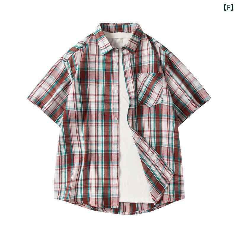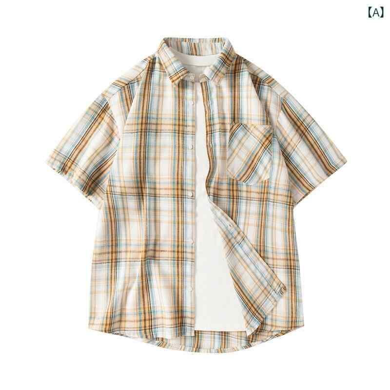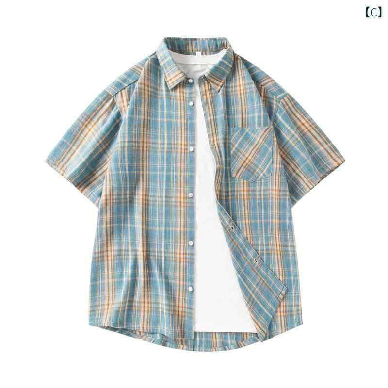 シャツ メンズ 半袖 チェック柄 開襟 ゆったり ルーズシルエット カジュアル ストリート ティーンズ 綿混 ポリエステル 洗濯可能 イージーケア