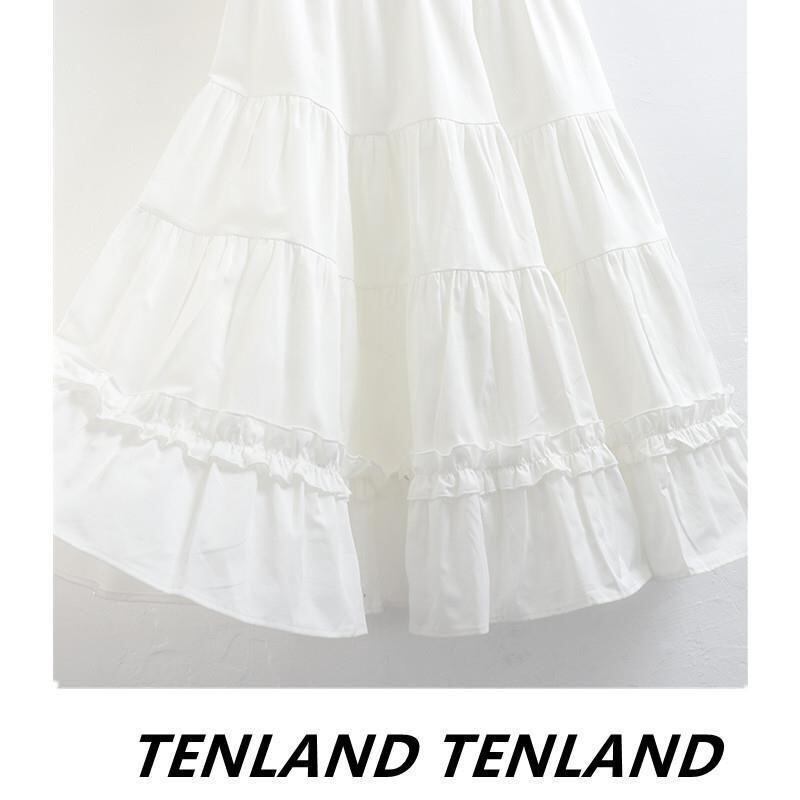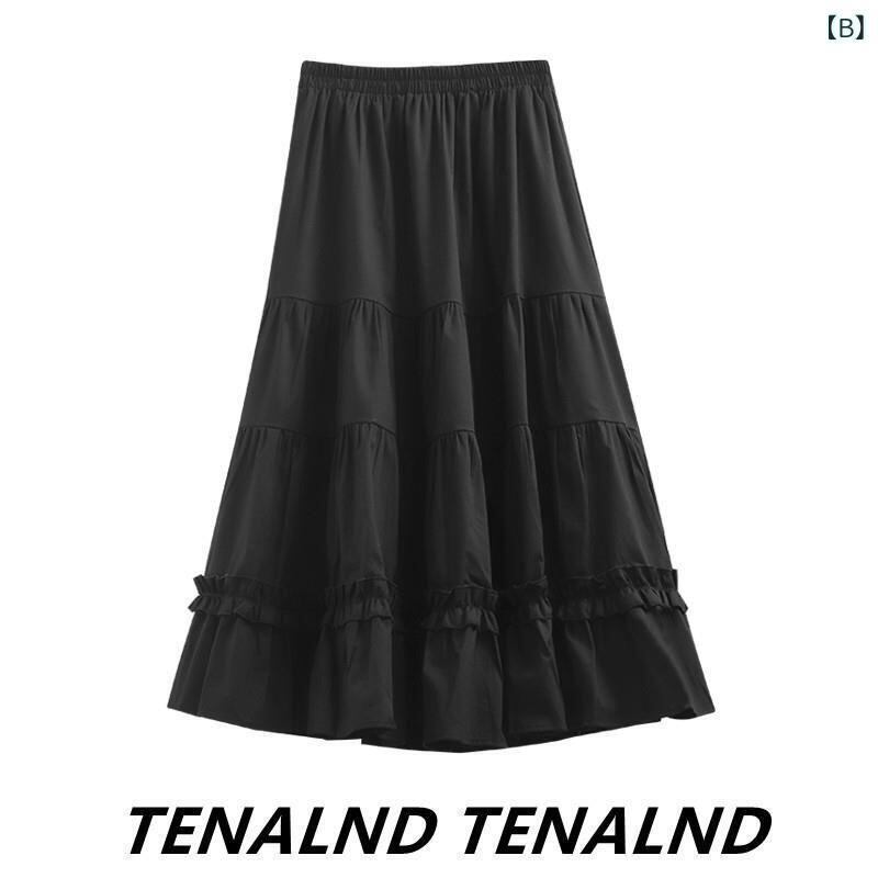 スカート レディース 白 ミディ丈 半身スカート プリーツ フレア Aライン ティアード かわいい 着痩せ 体型カバー ポリエステル 無地 切り替え オフィス 通勤 きれいめ カジュアル