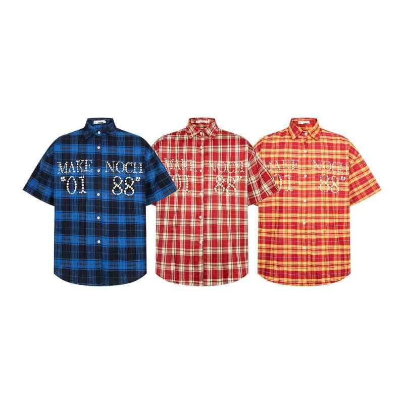 ・カテゴリ: シャツ・スタイル: アメカジレトロ・デザイン: 開襟・主な素材: 綿100%・機能: 通気性・生地の番手: 30番手・シルエット: ゆったり・ネックライン: 襟付き・袖丈: 半袖・柄: チェック・厚さ: 普通・デザインディテール: ステッチ・対象: 青少年、成人・対象性別: メンズ・着用シーン: カジュアル・カラー展開: レッド、オレンジ、ブルー・サイズ展開: M、L、XL・適合シーズン: 春秋・加工: 形態安定加工