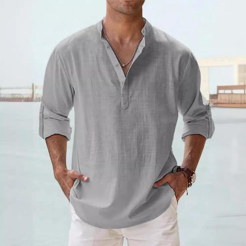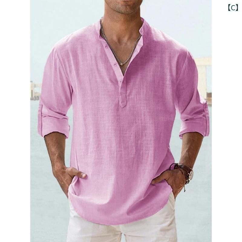 シャツ メンズ カジュアル ゆったり ビッグシルエット スタンドカラー 立ち襟 長袖 無地 綿100% コットン トップス スポーツ 普段使い 吸湿速乾 通気性 大きいサイズ