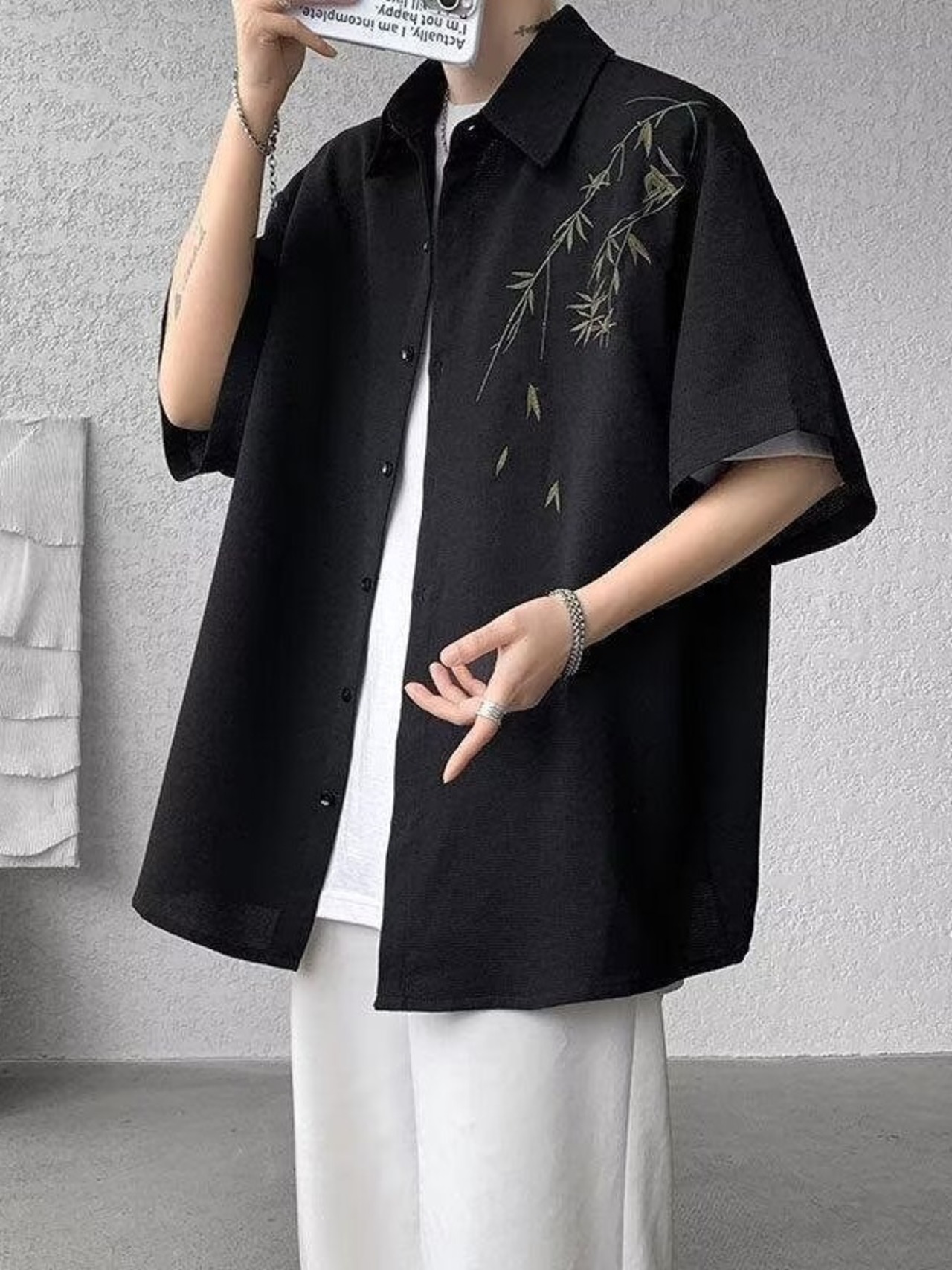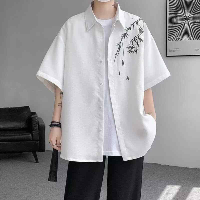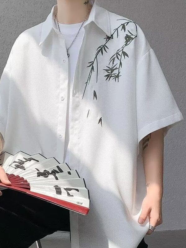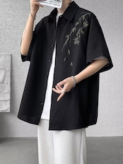 シャツ メンズ 新チャイナ風 半袖 接触冷感 速乾 UVカット 開襟 ゆったり リラックスフィット 薄手 軽量 ポリエステル混紡 ウォッシャブル ボタニカル柄 香港風 カジュアル トップス 旅行 レジャー 羽織り