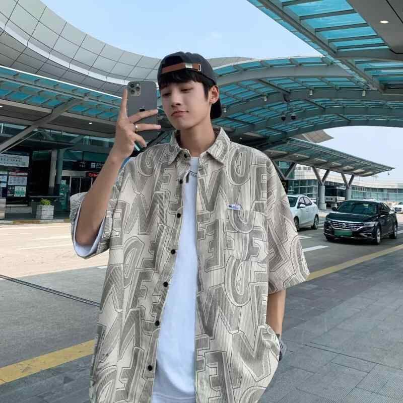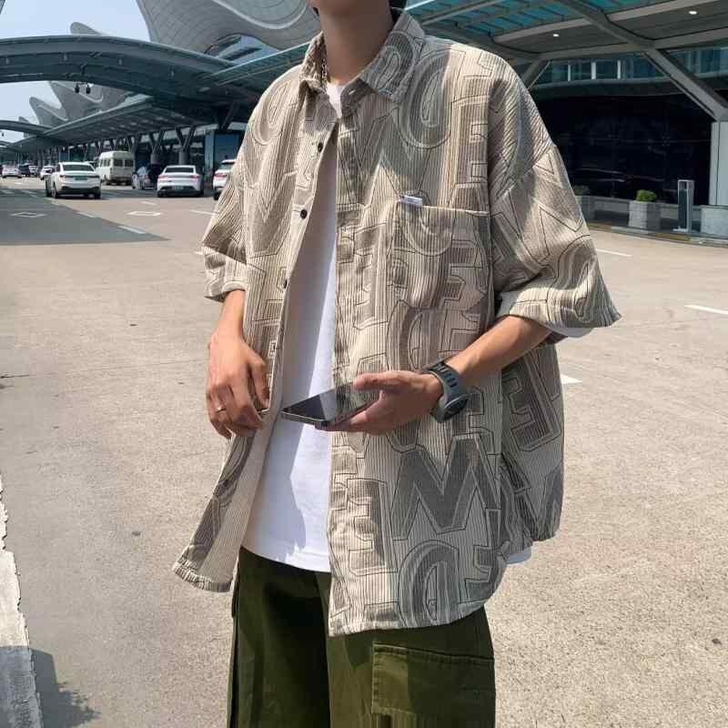 シャツ メンズ 半袖 タイダイ柄 配色 ビッグシルエット ルーズフィット 香港風 レトロ 韓国ファッション ヒップホップ ストリート ワークシャツ 薄手 軽量 ポリエステル混紡 耐摩耗性 夏服 普段使い カジュアル ブラック ブルー カーキ
