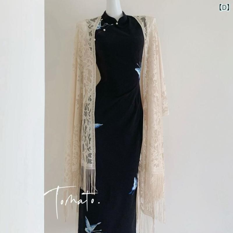 ・主な素材: ポリエステル・丈: ロング・ネックライン: ラウンドネック・襟元: ラウンド襟・袖丈: 七分袖・スリット: 低め・デザイン要素: ファスナー・伸縮性: 微ストレッチ・カラー展開: ブラック、アプリコット・サイズ展開: S、M、L、XL、2XL・スタイル: 中国風、レトロモダン・性別: 女性・加工: プリント