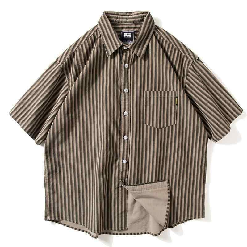 シャツ 男女兼用 夏 半袖 ストライプ柄 ゆったり コットン ワークシャツ 日系 アメリカンレトロ 原宿風 ボーイフレンド風 薄手 イージーケア デイリー カジュアル トップス
