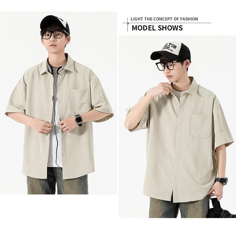 シャツ メンズ 半袖 夏 接触冷感 襟付き 無地 ビッグシルエット カジュアル 着回し トップス ポリエステル 薄手 軽量 速乾 ウォッシャブル デイリーユース リラックスウェア 羽織り