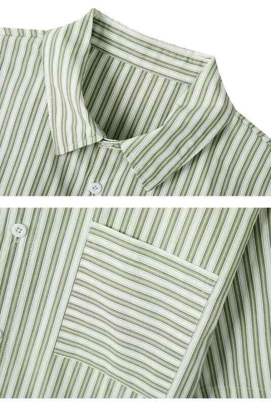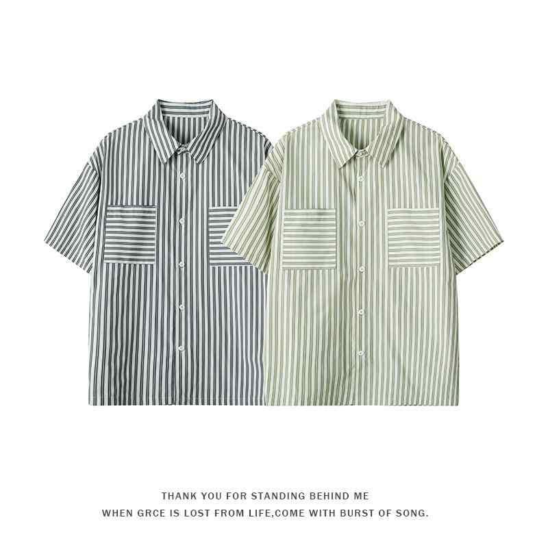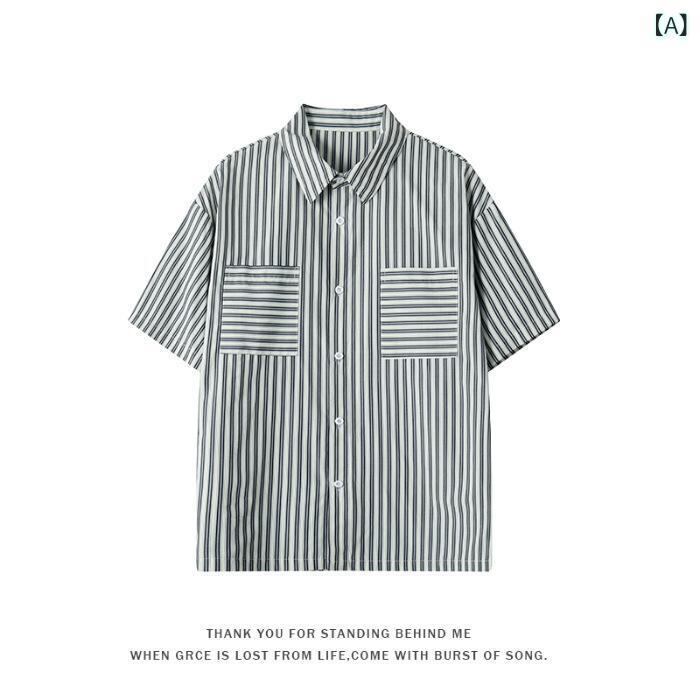 シャツ メンズ ストライプ柄 半袖 レギュラーカラー 麻 リネン ゆったり オーバーサイズ カジュアル 形態安定 ウォッシャブル ビジネス 通勤 オフィス 普段使い レトロ トップス