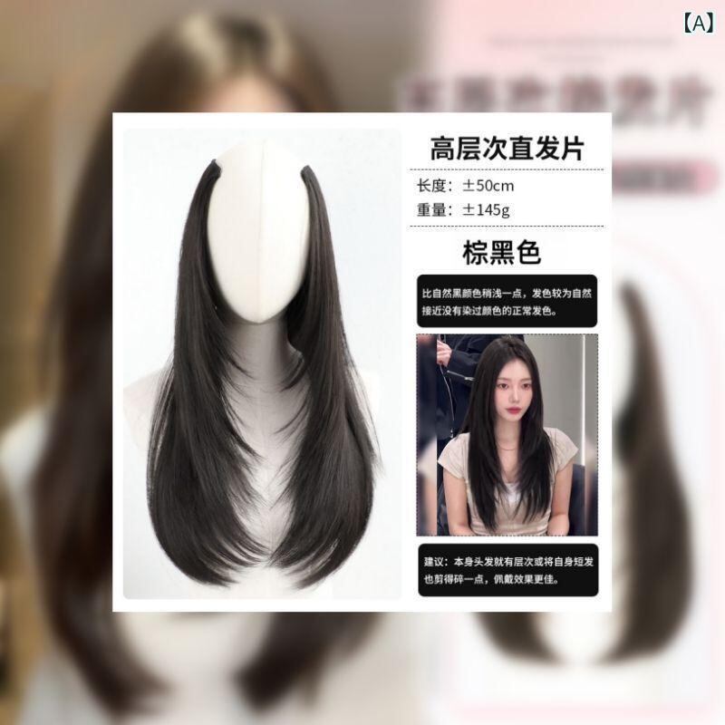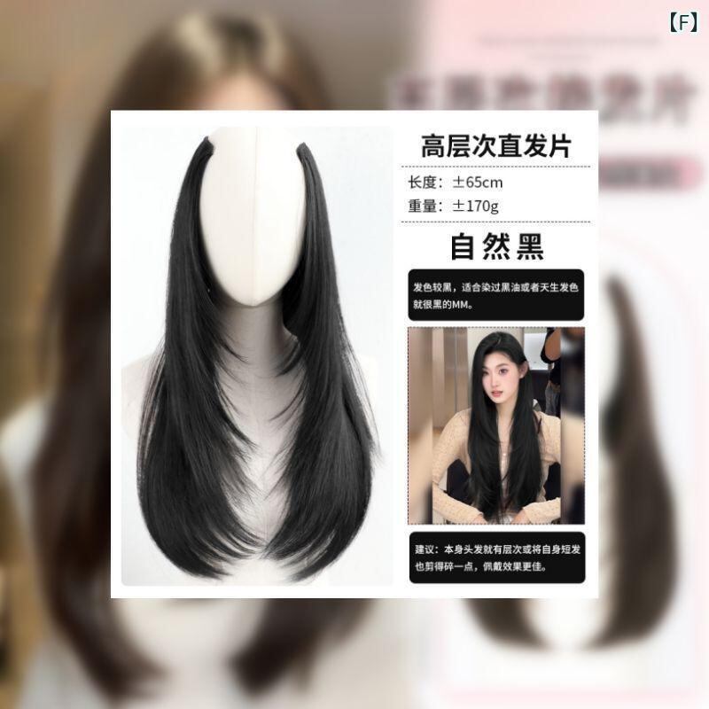 部分ウィッグ レディース ボリュームアップ 増毛 ふんわり エクステ ヘアピース つけ毛 ワンタッチ 簡単装着 耐熱ファイバー 目立たない シームレス 跡なし 内巻き ウェーブ レイヤー ロング ミディアム 自然な黒 ダークブラウン ライトブラウン