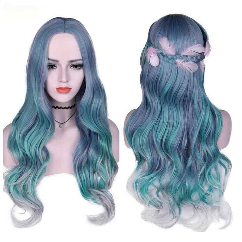 ウィッグ レディース グラデーションカラー ロングカール ウェーブ 耐熱ファイバー センター分け 前髪なし ロリータ コスプレ アニメ 原宿風 ファッション かつら
