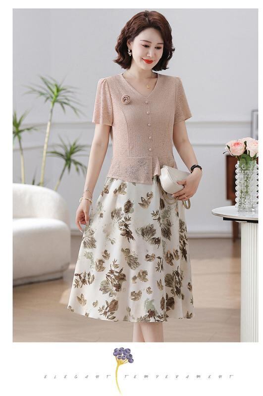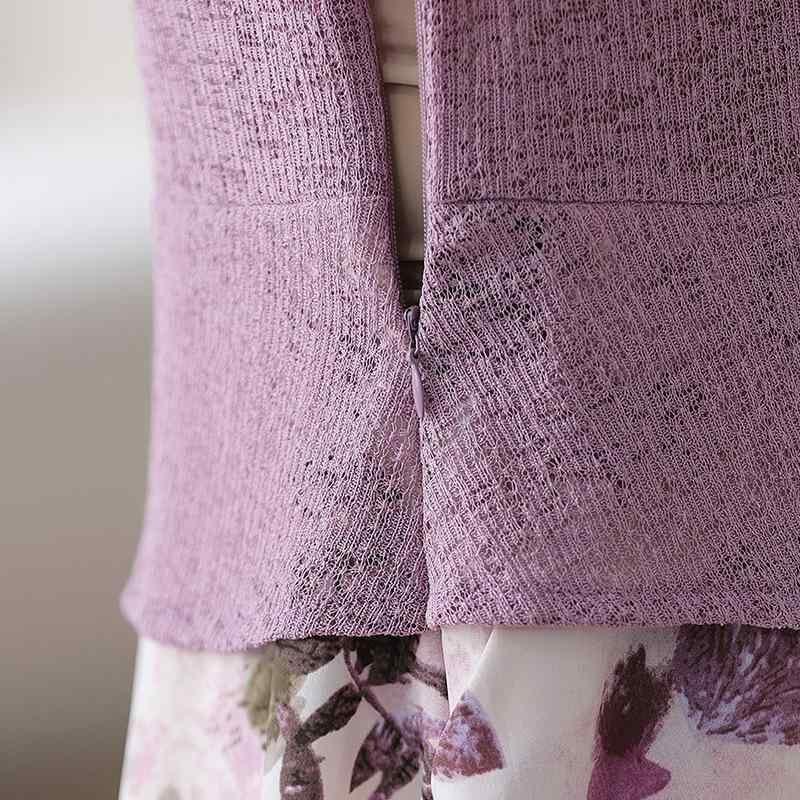 ワンピース レディース ミセス 大人女性 半袖 ドッキングワンピース ミモレ丈 上品 エレガント 高級感 きれいめ 通勤 オフィス フォーマル ポリエステル シワになりにくい アプリコット パープル