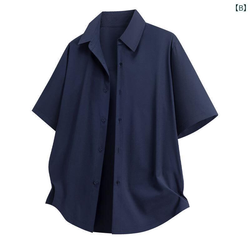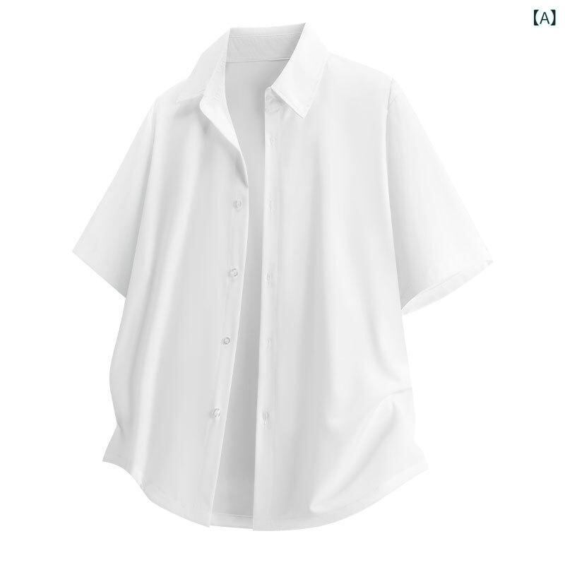シャツ メンズ 半袖 無地 襟付き ゆったり オーバーサイズ ポリエステル ストレッチ 通気性 大人カジュアル 普段使い ホワイト ネイビー グリーン カーキ ブラック