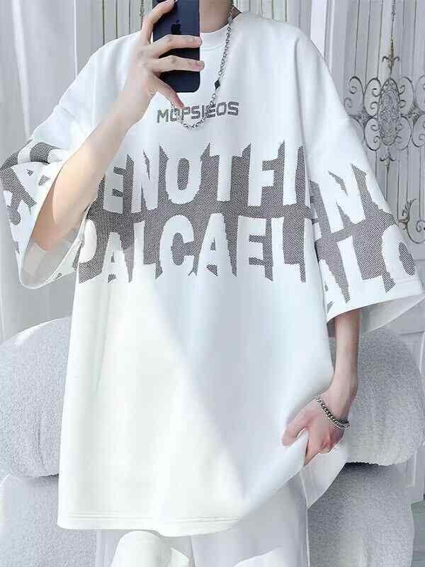 セットアップ メンズ 五分袖 Tシャツ ハーフパンツ ゆったり ルーズフィット 英字ロゴプリント カジュアル ストリート スポーツ スタイリッシュ ポリエステル素材 ブラック ホワイト 夏服