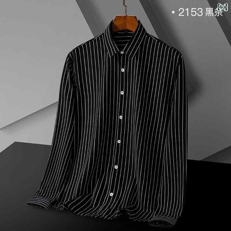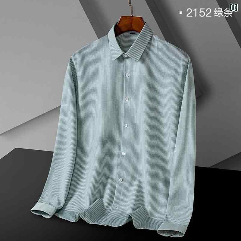 シャツ メンズ 男性用 春秋 長袖 ストライプ ビジネス カジュアル ストレッチ 伸縮性 ポリエステル 薄手 ウォッシャブル イージーケア シワになりにくい トップス