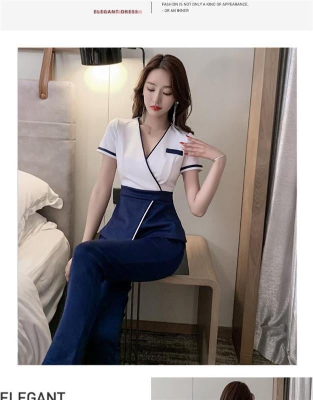 ユニフォーム レディース エステ 美容サロン リラクゼーション スパ マッサージ 施術 ワークウェア 制服 セットアップ 上下セット 半袖 チュニック 体型カバー 細見え シェニール素材 伸縮性 電磁波対策