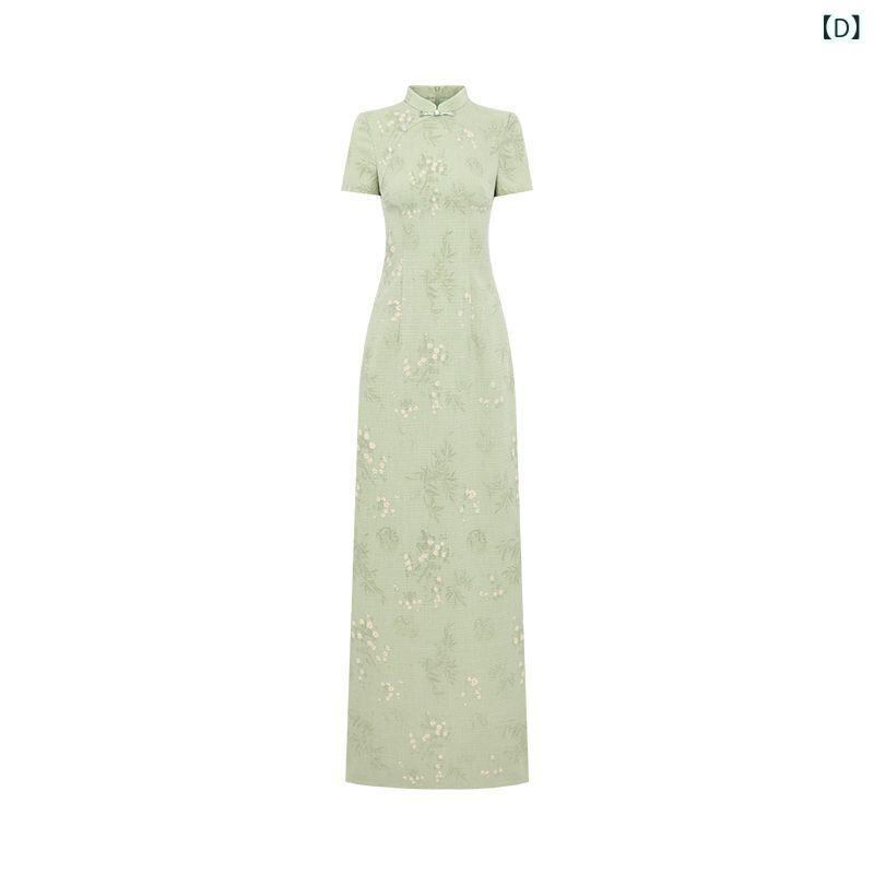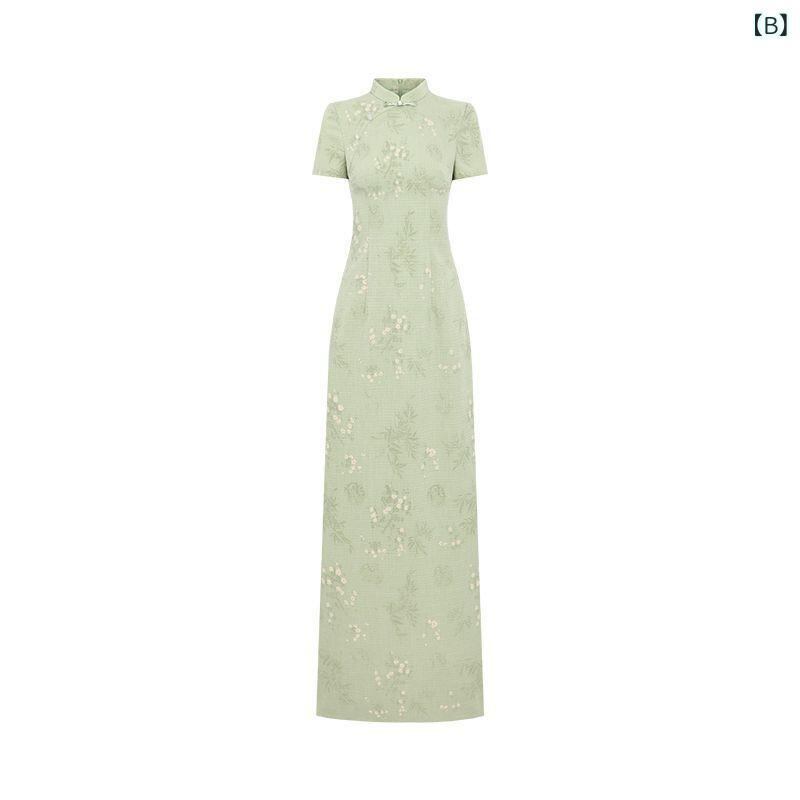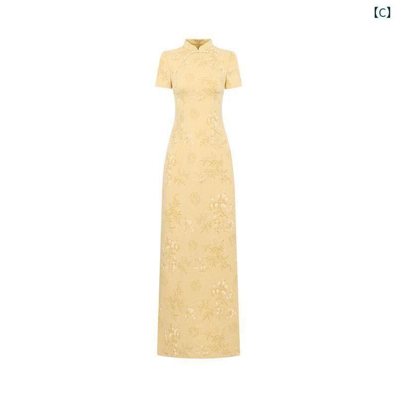 旗袍ワンピース レディース モダンチャイニーズ 江南スタイル 改良型 レトロ クラシック 上品 優雅 ハイネック 半袖 ハイウエスト ロング丈 マキシ丈 Aライン エンボス加工 ポリエステル 花柄 普段使い お出かけ フォーマルドレス