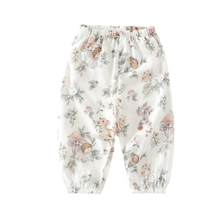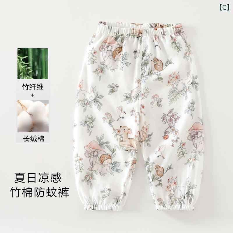 防蚊パンツ ベビー 女の子 キッズ 子供 夏用 薄手 竹綿 ガーゼ コットン 通気性 柔らか 吸湿速乾 ロングパンツ ルームウェア パジャマ 普段使い アニマル 花柄 キャラクター 80-120cm