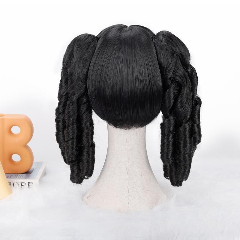ウィッグ レディース ロリータ ツインテール お嬢様 縦ロール レトロ コスプレ ブラック 耐熱ファイバー ぱっつん前髪 イベント ロング