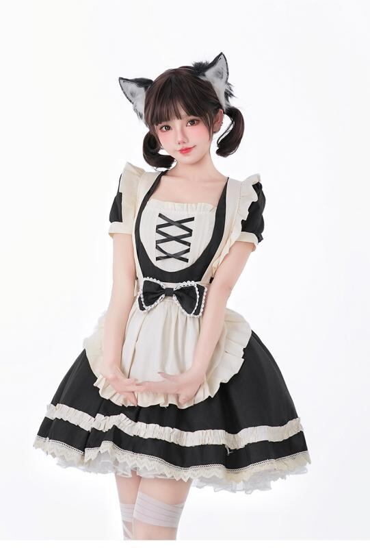 コスチューム レディース メイド服 ロリータ ワンピース かわいい 二次元 スウィート ショート丈 ミニ丈 ポリエステル 黒 白 ピンク レッド ブルー イベント パーティー ハロウィン 学園祭