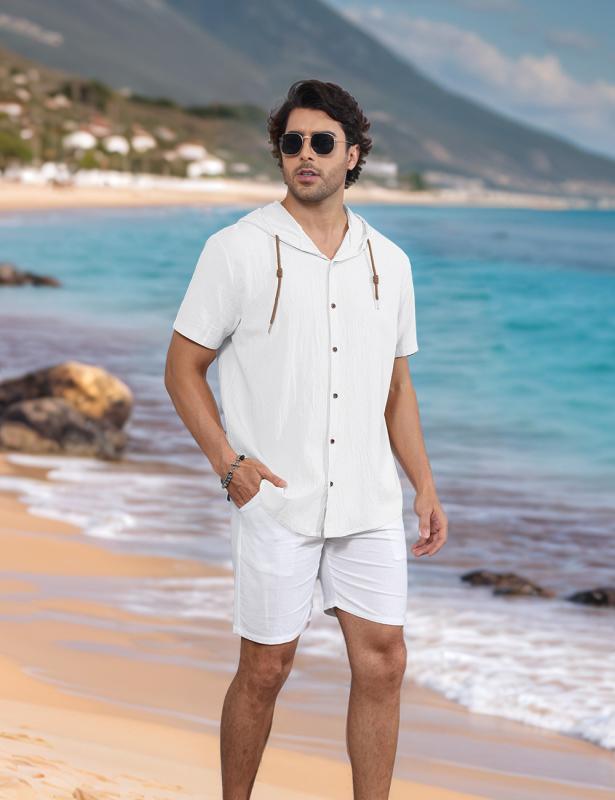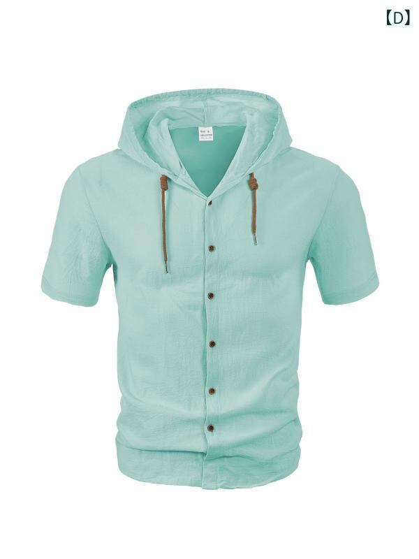 シャツ メンズ リネン 半袖 薄手 フード付き アメカジ ゆったり 通気性 吸湿速乾 マシンウォッシャブル カジュアルスタイル ブラック ホワイト カーキ ネイビー