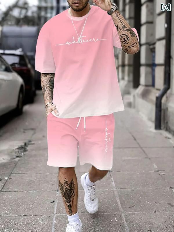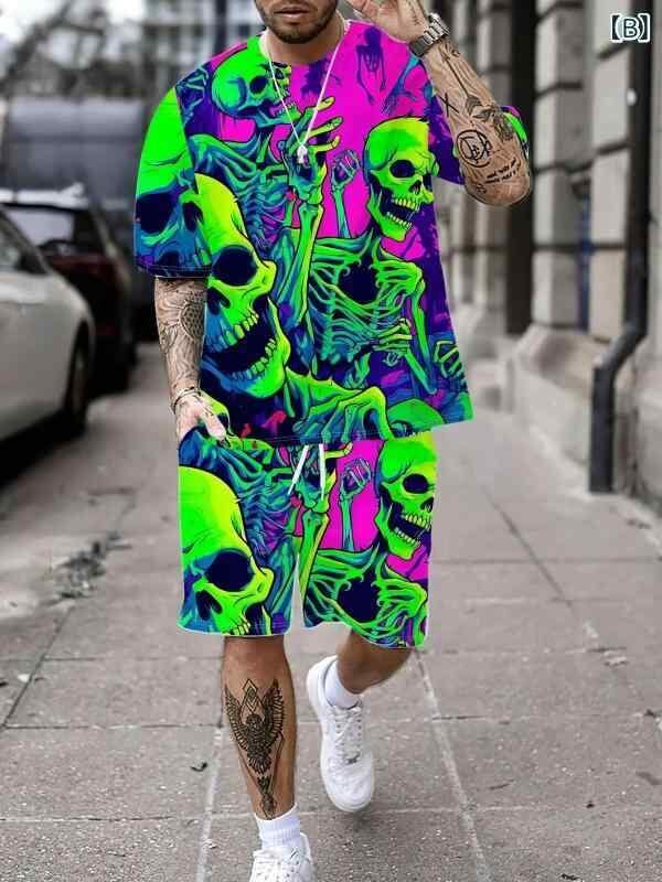 Tシャツ メンズ 夏物 3Dプリント デザイン 個性的 クール かっこいい トレンド カジュアル スポーツ ストリートスタイル 普段使い 半袖 ショートパンツ 上下セット ポリエステル素材
