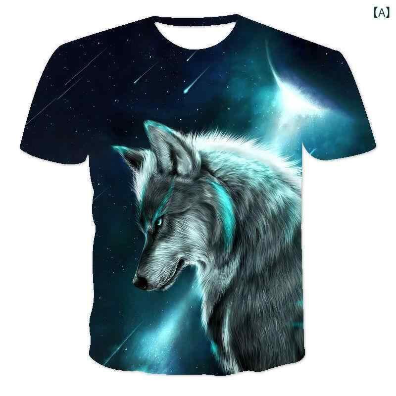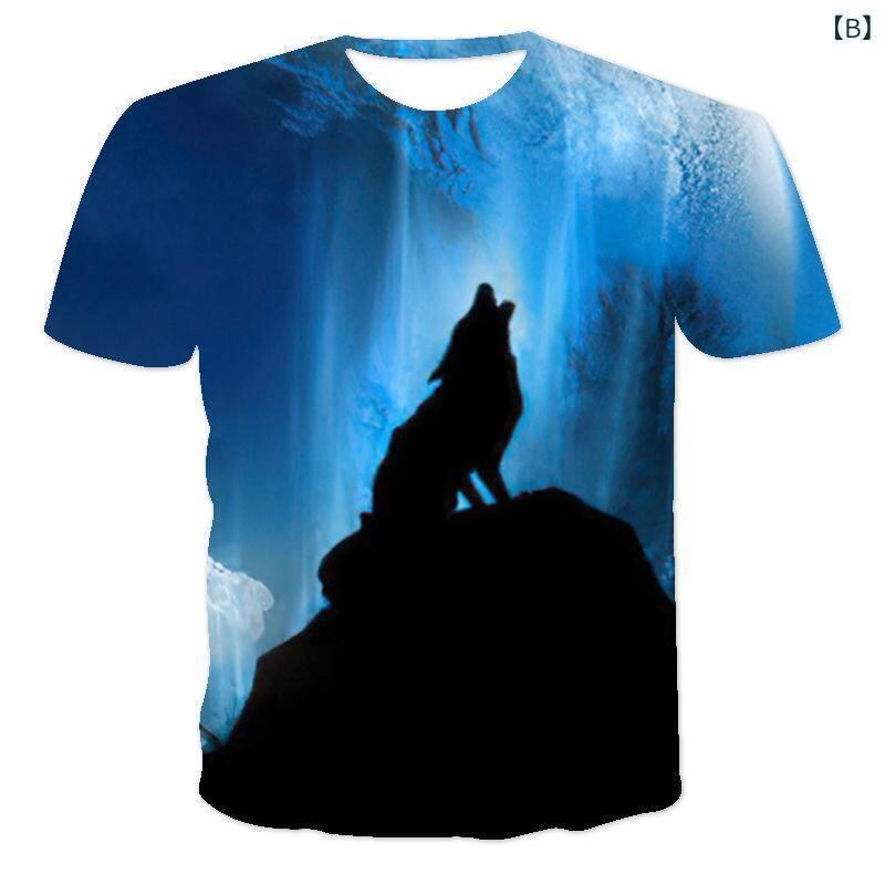 Tシャツ メンズ かっこいい 動物 オオカミ 3D デジタルプリント 半袖 プルオーバー カジュアル スポーツ 薄手 ポリエステル 夏物 普段使い