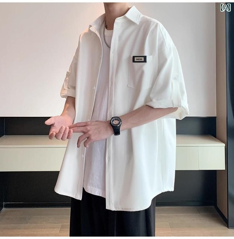 シャツ メンズ ブラック 接触冷感 夏用薄手 半袖 ゆったり オーバーサイズ イージーケア ポリエステル混 カジュアル 普段使い