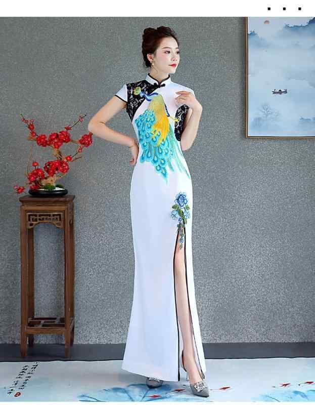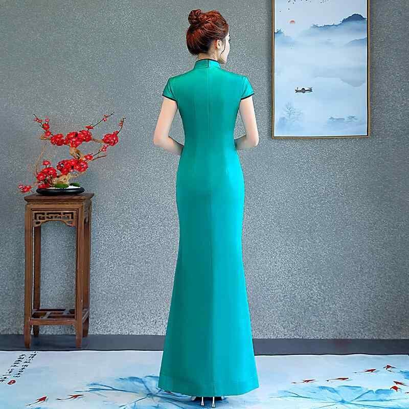 チャイナドレス レディース ロング丈 ハイ スリット シースルー セクシー エレガント 着痩せ効果 中国風 舞台衣装 イベントドレス 大きいサイズ ゆったり スタンドカラー 斜め襟 ポリエステル レトロ ボルドー グリーン ホワイト