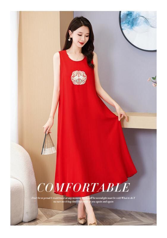 ・カテゴリ: ワンピース・スタイル: 中国風・主な素材: ポリエステル90〜95%・ネックライン: クルーネック・袖丈: ノースリーブ・柄: 刺繍・カラー展開: チャイナレッド、ブラック、ホワイト、パープル、イエロー・サイズ展開: XL、2XL、3XL、4XL、5XL・スカート丈: ロング丈・ウエスト: ゆったり・デザイン: ポケット
