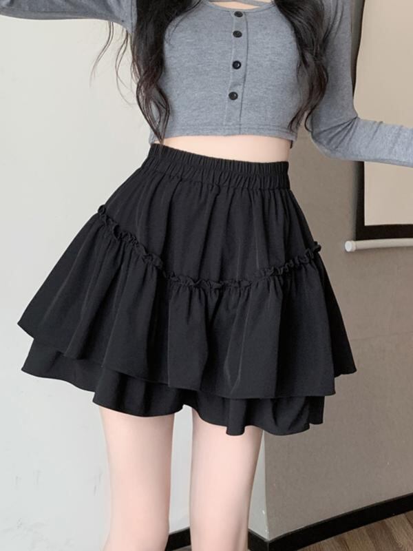 スカート レディース ミニ丈 ハイウエスト ティアード フリル Aライン フレア 大きいサイズ ゆったりサイズ スタイルアップ 細見え効果 シェニール スパンデックス混 ストレッチ 夏 エレガント 大人カジュアル フェミニン 黒 白