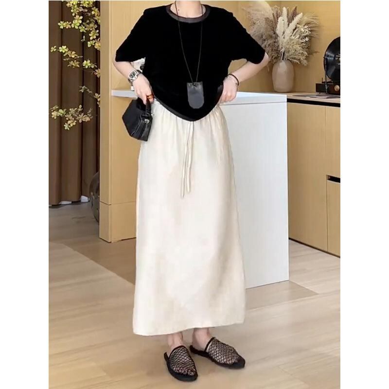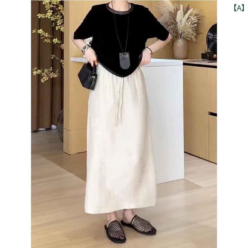 スカート レディース 大きいサイズ プラスサイズ 夏用 薄手 軽量 体型カバー スタイルアップ 着痩せ ゆったり ドレープ感 落ち感 表面感 テクスチャー Aライン ミディ丈 ロング スリット ホワイト ブラック ストレッチ 伸縮性