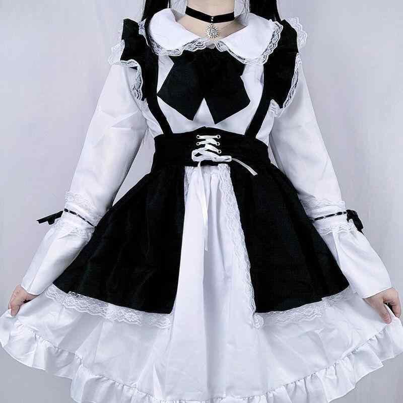 メイド服 ロリータ レディース メンズ かわいい 猫耳付き ワンピース フルセット コスプレ 衣装 イベント 仮装 ハロウィン パーティー 再生繊維 ポリエステル フリル リボン 日常使い おうち時間 カジュアル ルームウェア ドレス